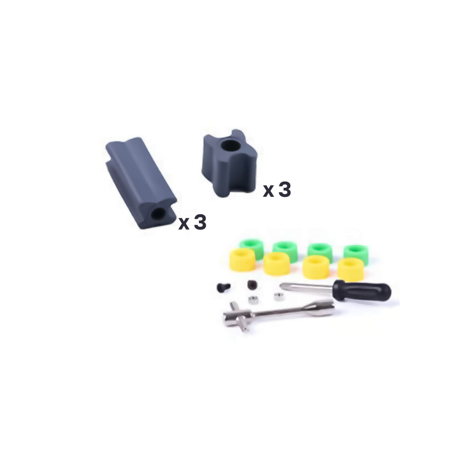 - Набор состоит из:8 колес, 1 отвертку, 1 ключ, 3 длинные и 3 короткие кнопки.