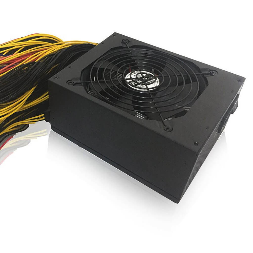 Блок питания для компьютера 2000W для майнинга на 8 видеокарт многоканальный оснащен надежной системой безопасности от перенапряжения, перегрузок, короткого замыкания. Оборудование для майнинг фермы рассчитано на 180-240 В входного напряжения, 15/8 А входного тока и 47/63 Гц. Внешне представляет собой блок с кулером для охлаждения собранной системы и выходящими кабелями для подключения. Компьютерный блок питания имеет металлический корпус, который также дополнительно отводит тепло. В комплекте с БК для ПК идет вилка европейского стандарта.