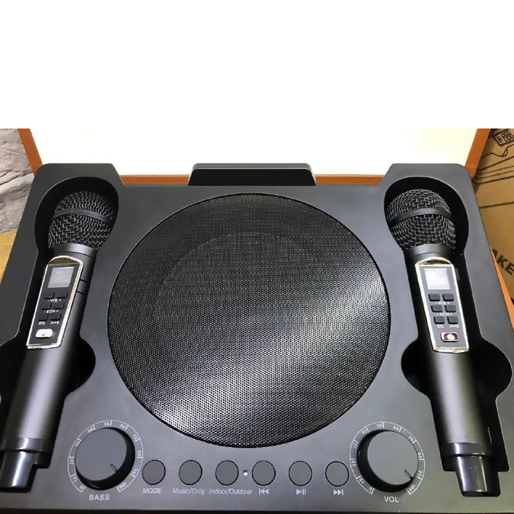 - Звукимеет 1 динамик + 2 микрофона Bluetooth (два аккумуляторных беспроводных микрофона)