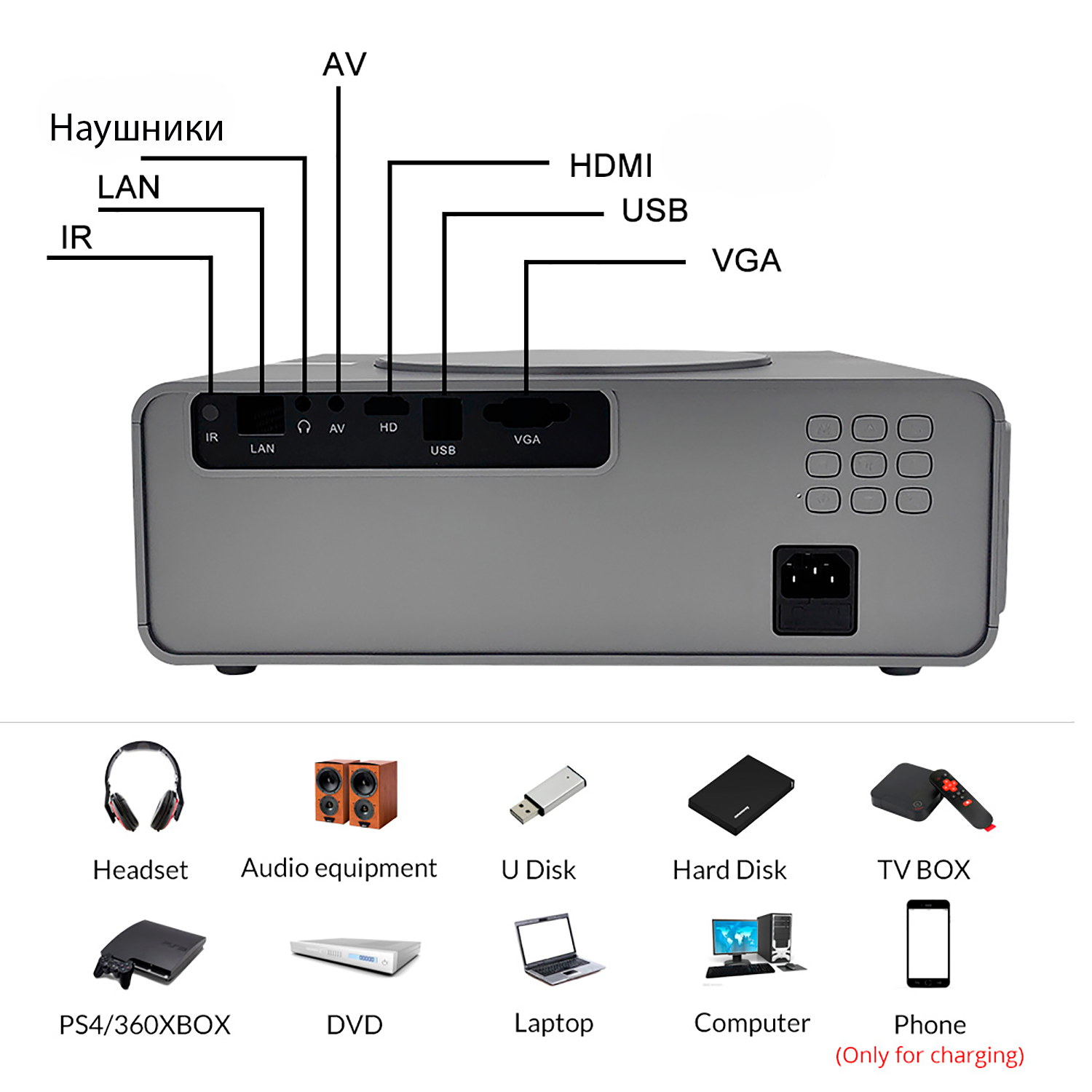 - Размер экрана проектора40-120 дюймов
