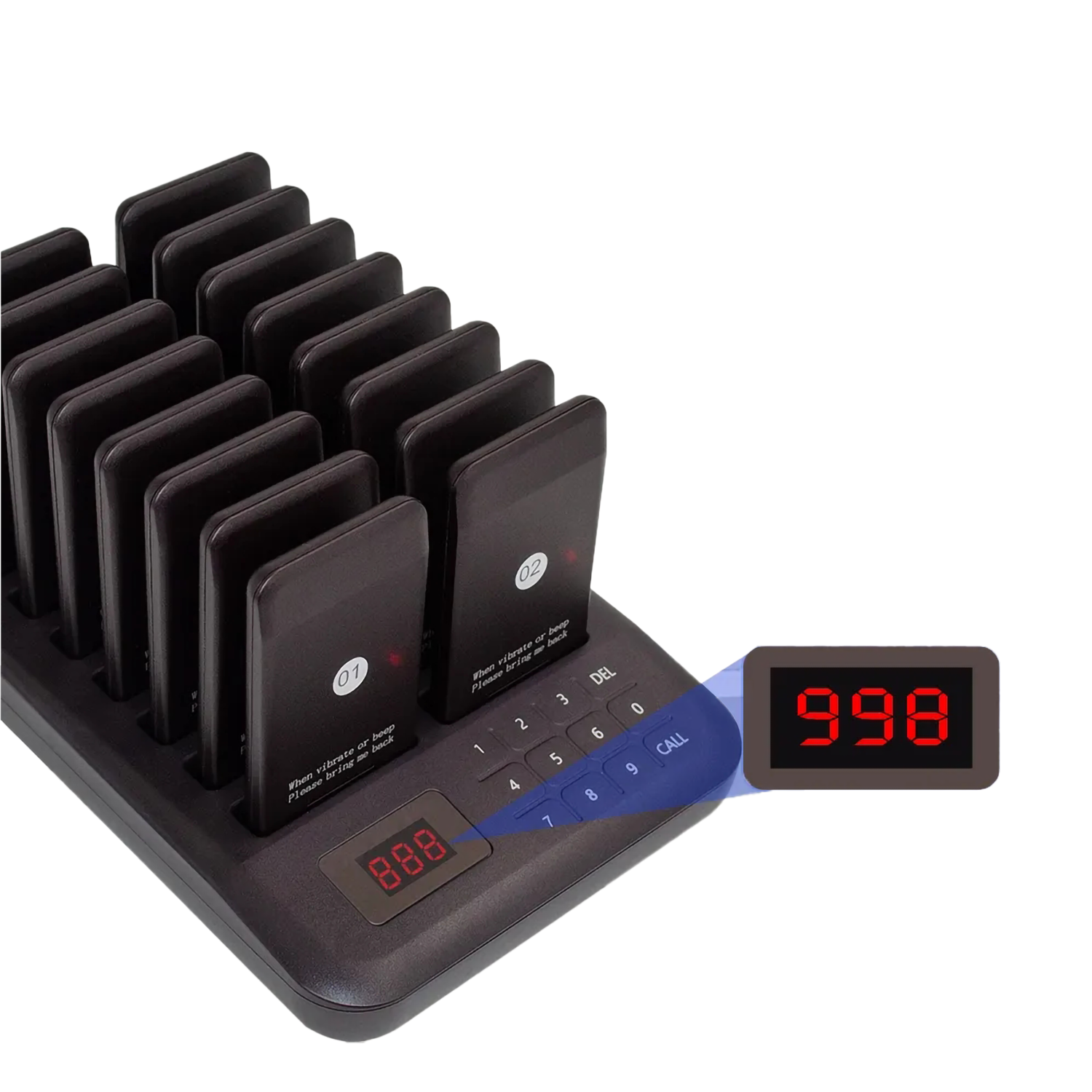 Система из 16 пейджеров CATEL с защитой IP32 для дистанционного оповещения клиентов ресторана
