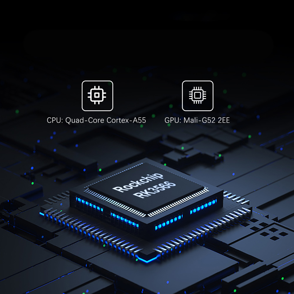- ПроцессорRockchip RK3566 Quad-Core 64bit Cortex-A55