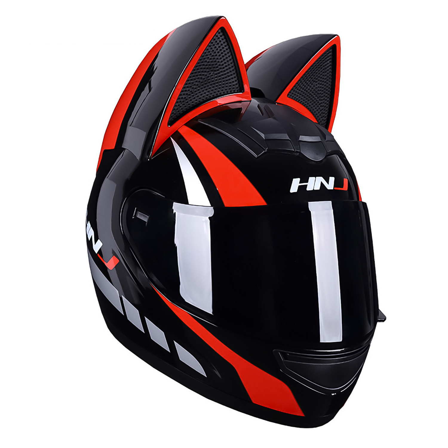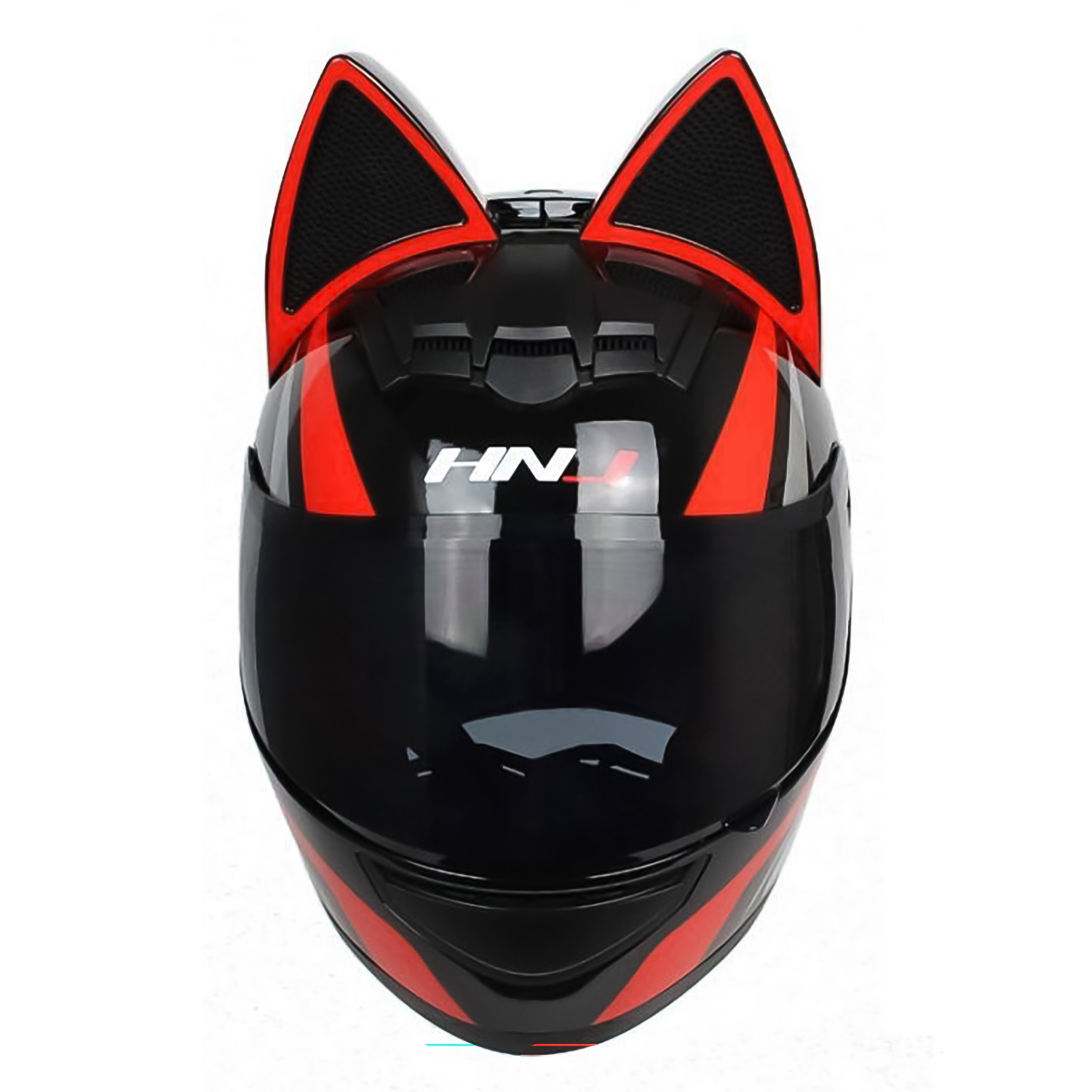 Мотошлем HNJ с кошачьими ушками красный